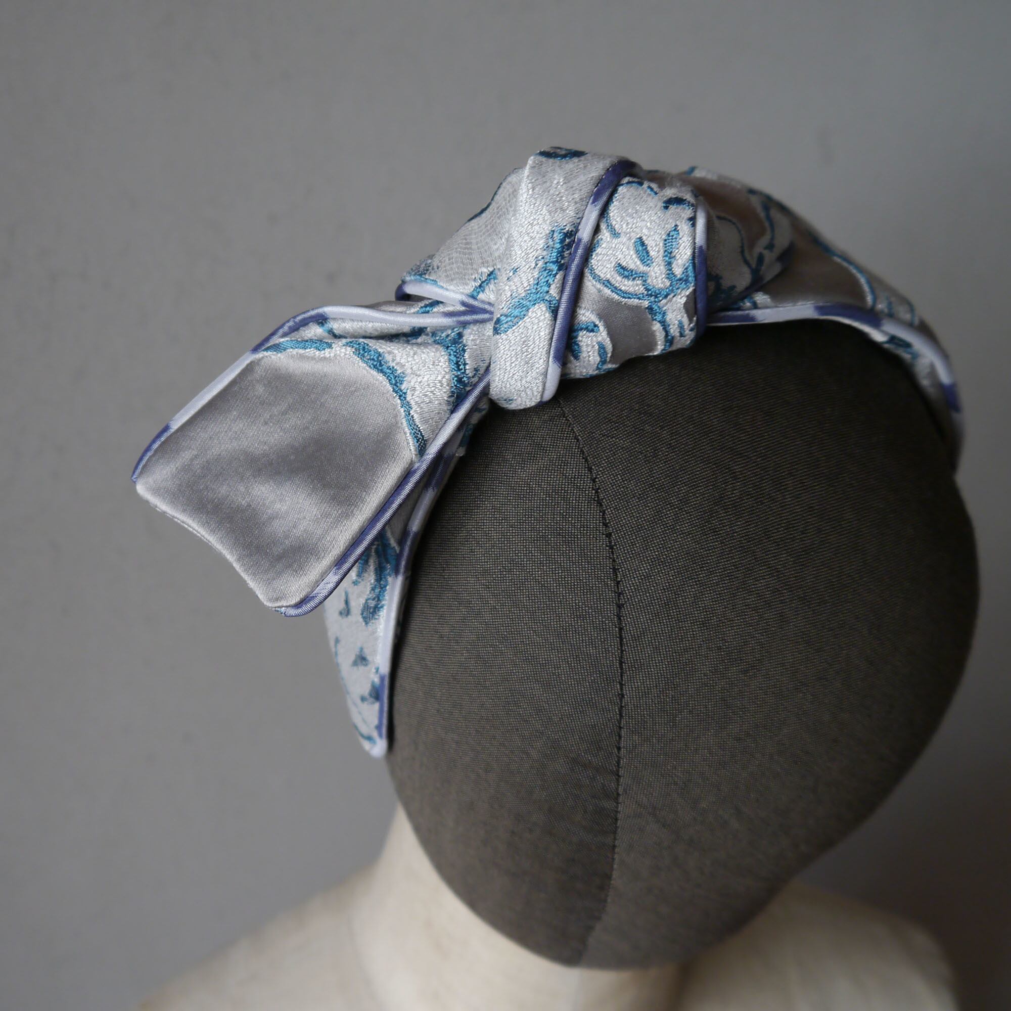 ベース➡シルバーにブルーフラワー織の生地(フランス買付生地)